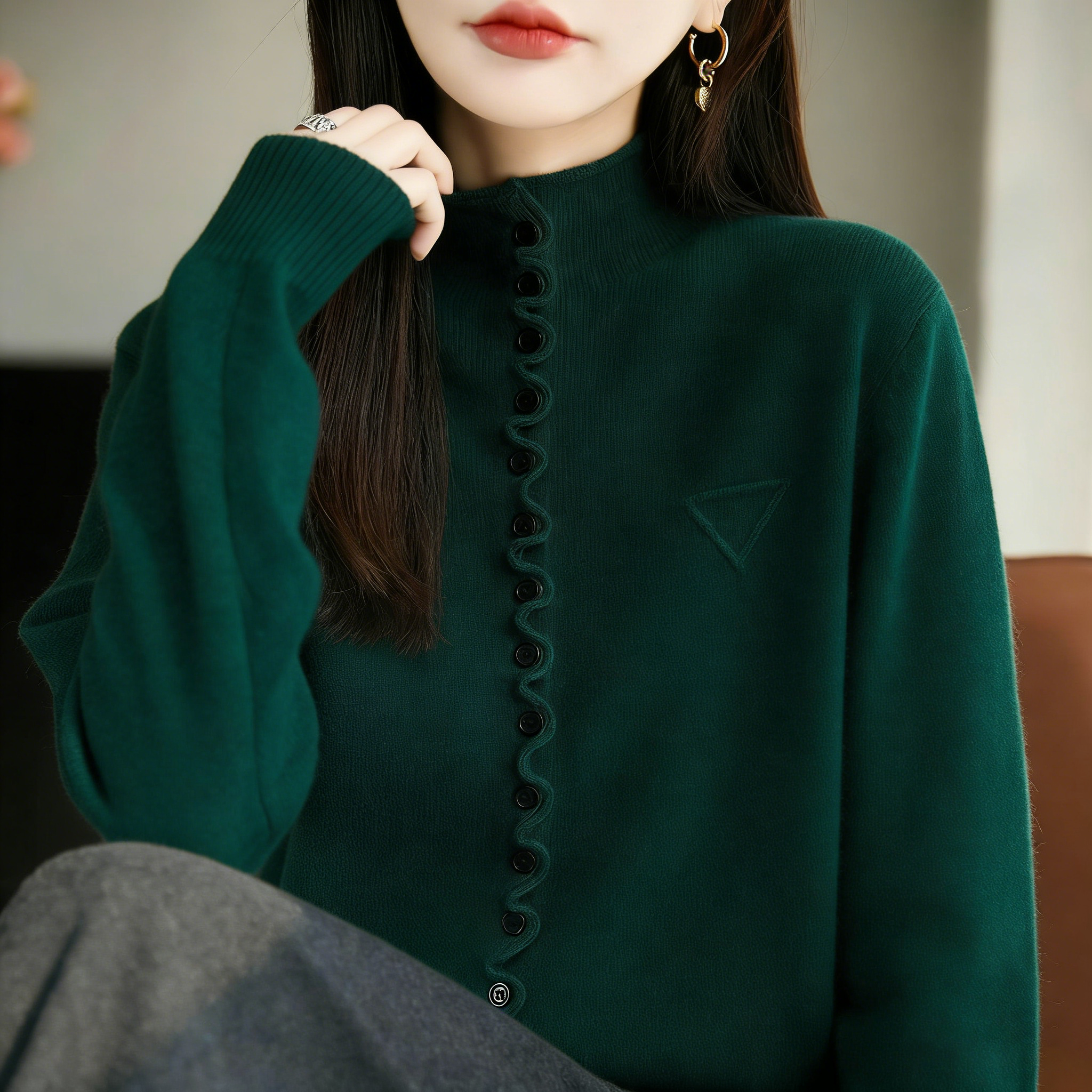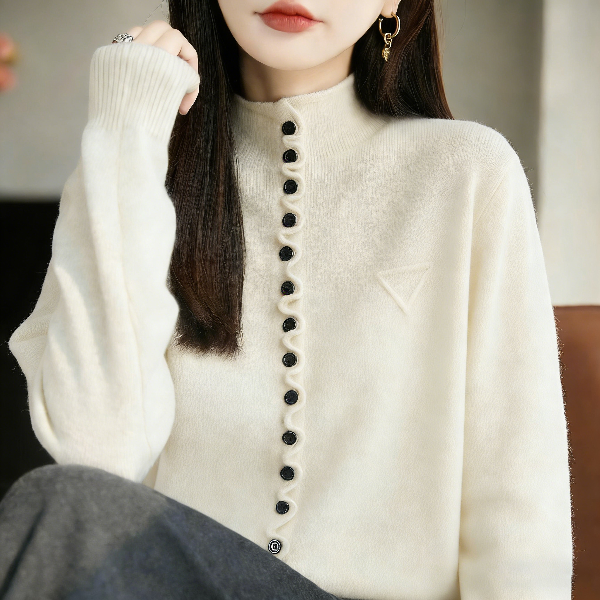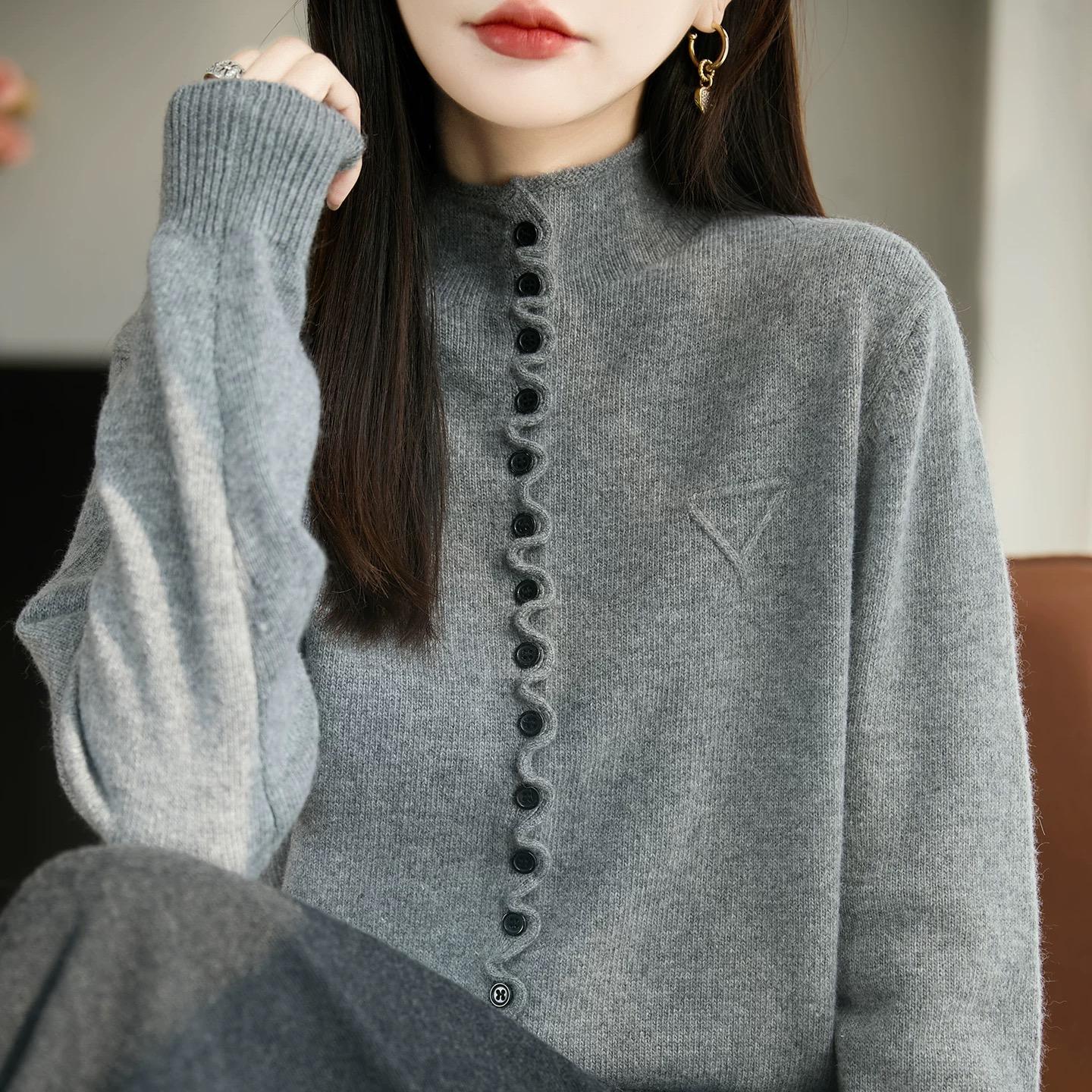 歐貨氣質針織開衫毛衣外套單排釦寬鬆上衣