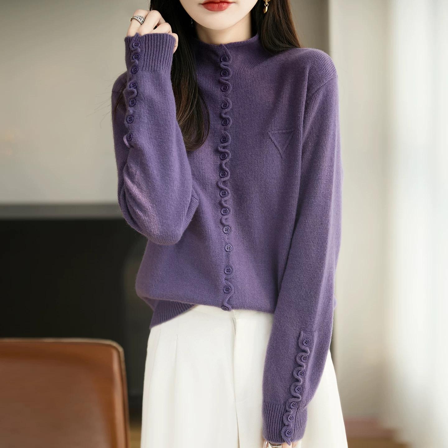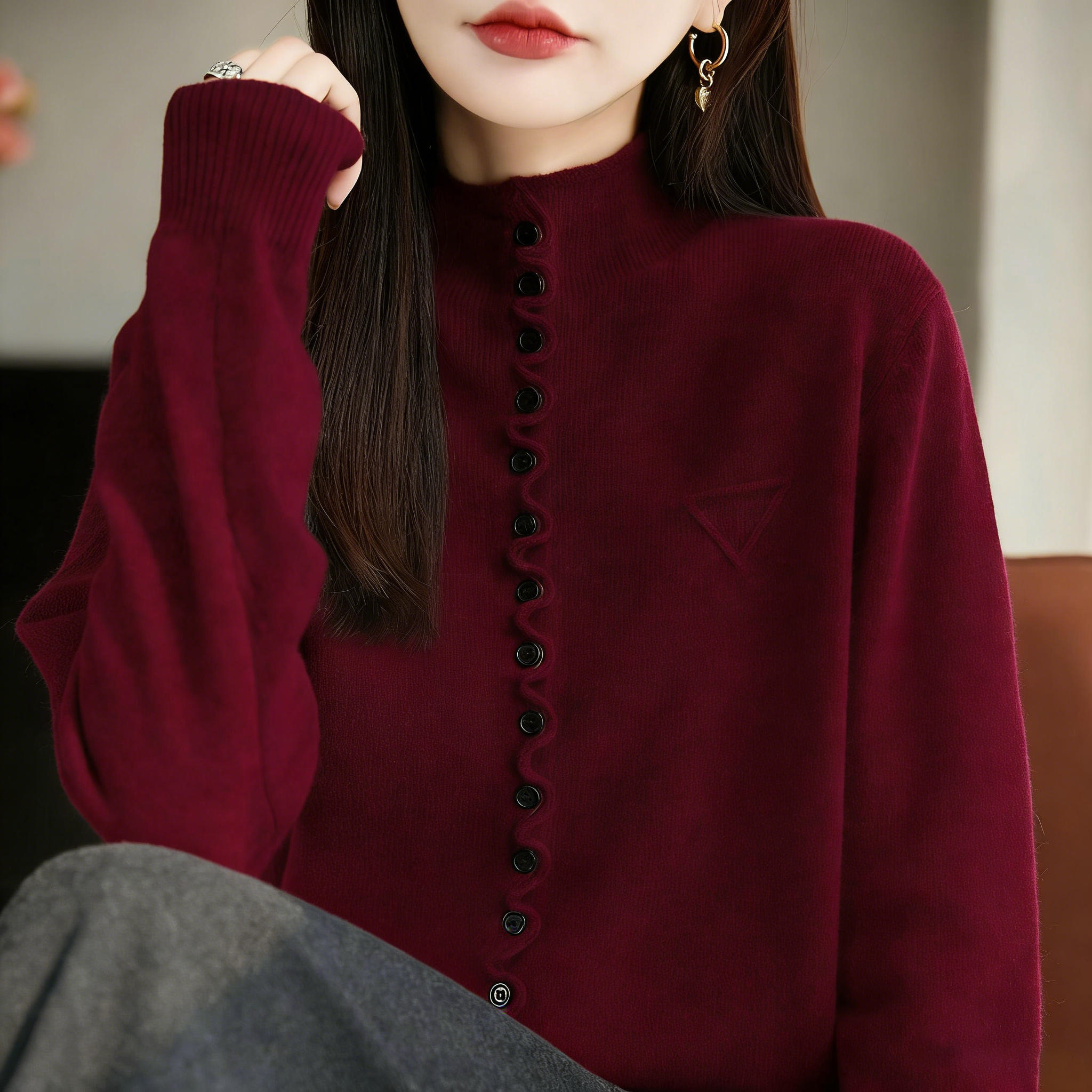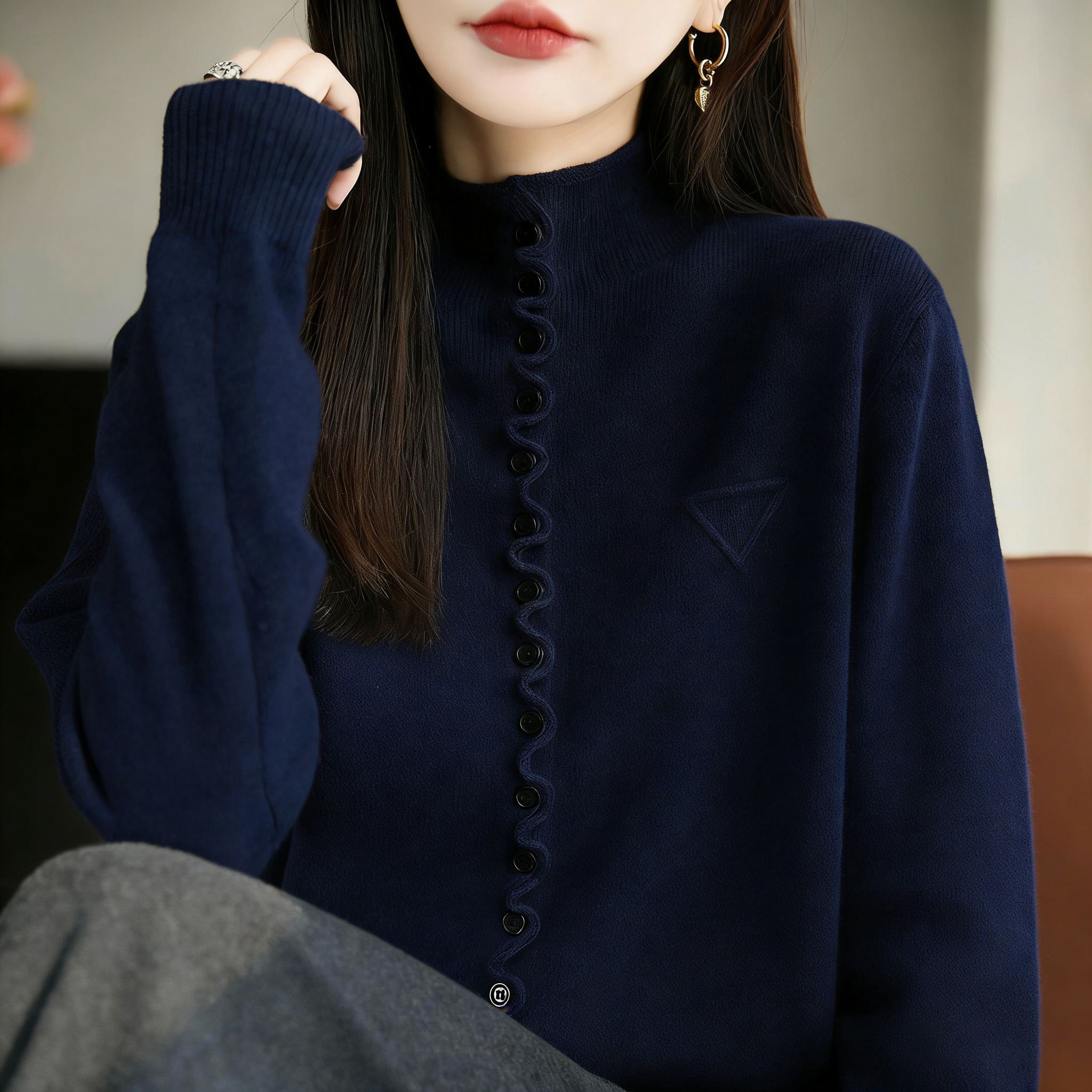 歐貨氣質針織開衫毛衣外套單排釦寬鬆上衣